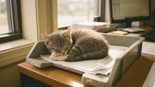 Фотография стояла на самом краю стола - там, где её точно заметят. Котёнок, рыжий, с бантом на шее. Лена поставила её вчера и теперь украдкой поглядывала на дверь кабинета. Оксана Вячеславовна прошла мимо в восемь сорок пять. Тёмно-русые волосы собраны в тугой пучок, серый костюм, блузка застёгнута на все пуговицы. Она скользнула взглядом по столу Лены. Задержалась на фотографии. Ничего не сказала. Только губы чуть сжались - так, что вокруг них проступили тонкие морщинки. Лена вжала голову в плечи...