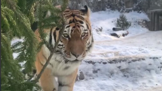 Ленинградский зоопарк показал амурского тигра Амадея, который радуется холоду