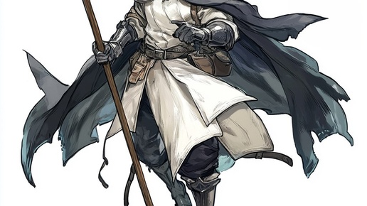 Создано на основе запроса: Fantasy concept illustration, Male, Human, Priest, Stern, Light leather armour, Battle Staff, Gray Mohawk hair