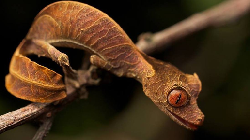 На острове Мадагаскар обитает весьма фантастический вид гекконов. Заметить их практически невозможно, потому что формой тела, окрасом и структурой кожи они очень похожи на сухие опавшие листья, с которыми чаще всего сливаются. Окраска геккона дополняет этот образ. Она варьируется от серо-коричневого до зеленого, желтого или темно-коричневого цвета. У самцов хвост по краям имеет неровную, рваную форму, благодаря которой он становится похож на старый лист. А по спине проходит узор, напоминающий прожилки на листе...