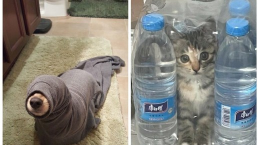 Домашние животные порой очень любят прятаться от людей. Некоторые коты в этом плане достигли особых высот и в совершенстве освоили искусство маскировки. Но вот животным из подборки ниже очень далеко до такого уровня… Только посмотрите, как они прячутся! «Васька, выходи, я тебя вижу». Почти удалось… А кто это у нас тут? Ох уж этот хвост! «Меня не видно, меня не видно…» Вообще-то штора — отличное место для того, чтобы спрятаться. Но даже это нужно уметь. Укрытие оказалось не таким уж и надежным...