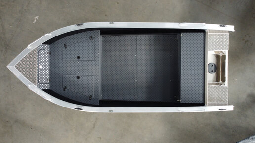 Длина 3.9м Ширина 1.6м. Высота борта 0.73м. В носовой части располагается рундук По бортам имеются полки, обшитые карпетом. Кормовой рундук со съемной стенкой. Что позволяет легко доставать канистру и другие вещи. Рецессовая часть закрыта перегородкой, при необходимости, все легко монтируется для доступа к кормовой части. Кормовая часть лодки. Установлены транспортировочные рымы, площадка под эхолот, крепления для страховочного троса, ревизионный люк...