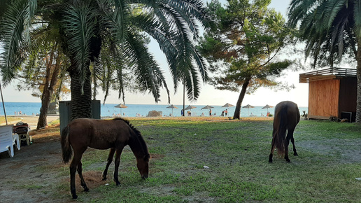 Красиво смотрятся лошади на берегу моря. И под пальмой. И вообще они красивые животные) В ОПК Пицунда иногда заходит погулять семья лошадей. Их четверо. Папа, мама и 2 жеребенка. Коричневой масти, стройные, статные. Один из отдыхающих сказал, что лошади эти дикие. Говорит, в прошлом году тоже они приходили. Только тогда их было двое. Молодая пара. А теперь уже с потомством. Теперь их четверо. Вместе приходят погулять в ОПК Пицунда. На место романтических встреч родителей. Жаль, фото всех 4х сделать не вышло, гуляли в разброс) На счёт лошадей не знаю...
