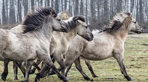 Потомки тарпанов диких лесных лошадей - Тарпановидная лошадь /Дикая лошадь тарпан /Беловежская пуща