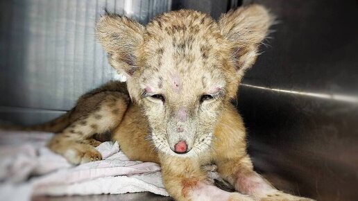 Спасенный из кавказского караоке изувеченный львенок пошел на поправку
