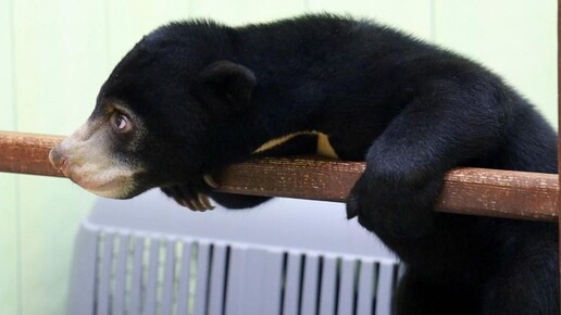Детеныш малайского медведя в Московском зоопарке