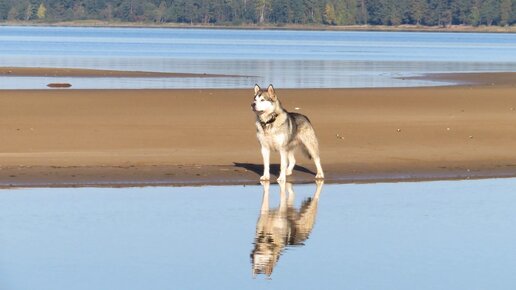 Здравствуйте, друзья! В тот день в Питере стояла прекрасная погода. Я отправилась на Финский залив в надежде встретить какую-нибудь интересную птичку, а в лесу поискать грибов. Но повстречала я кое- кого другого! Огромного маламута, который как оказалось, прогуливался совершенно один и БЕЗ хозяина. Вокруг был совершенно пустынный берег Финского залива. Я и собака! Пёс бегал прямо по песчаной отмели и я заметила, что моя персона его очень заинтересовала. Он направлялся ко мне, пересекая неглубокую заводь...