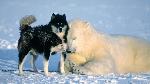 Канал о животных12,4 тыс читали · 6 лет назадПодписатьсяБелый медведь против МаламутаНеобычное видео засняли при встрече белого медведя с собакой породы маламут. Собаки, в основном, бесстрашные и лают, если их держат на цепи. Но, даже огромные размеры не испугали маламута. Https://ru.Wikipedia...