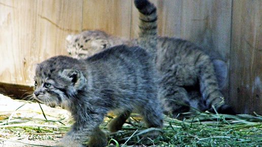 Маленькие манулы резвятся в зоопарке