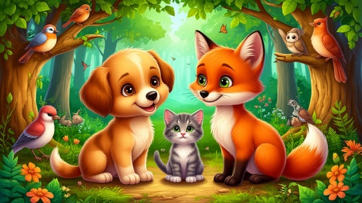 В маленьком уютном городке жили два малыша: маленький пушистый щенок по имени Бобик и любопытный игривый котёнок Мурзик. Однажды утром, выглянув в окно, они увидели друг друга через забор и сразу подружились...