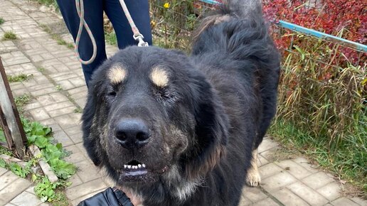 Перед завершением дачного сезона волонтёр увидела в пустом посёлке тибетского мастифа. Он был хромой, грязный и очень слабый