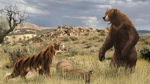 Хорошего мишки должно быть много! И агриотерий это знает. Это один из крупнейших косолапых за всю историю. И своё время, в середине миоцена, он обитал почти по всему миру от Африки и Евразии до Северной Америки! Товарищ был исключительно здоровенным, до 2.7 метров в длину и весом от 600 до 900 кг! Он входит в пятёрку крупнейших ископаемых медведей. При этом пышкой агриотерий не был — лапы от ушей могли бы сделать его топ-моделью по-медвежьи. Но не сложилось: зверь обитал до того, как придумали подиум — 13,82–2,58 млн лет назад...