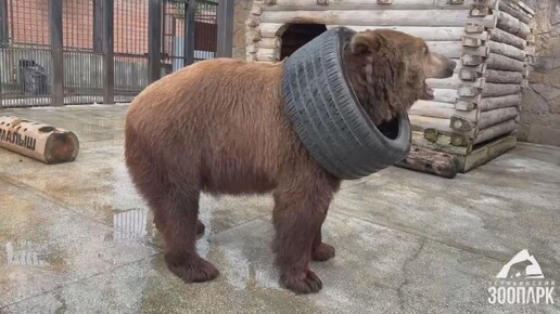 Медведь Малыш получил огромное удовольствие от подарка в зоопарке Челябинска