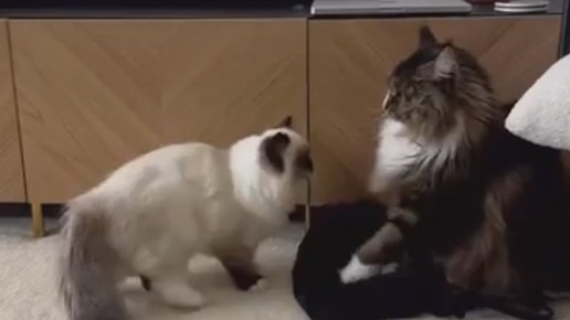 Мейн-кун и рэгдолл устроили бой — угадайте, кто победил