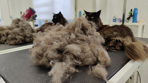 Мейн-кун на груминге. Экспресс-линька кошек.