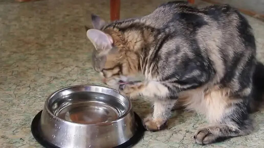 Мейн-кун ведёт раскопки. Представьте: идет кошечка к чашке с водой, скребёт вокруг неё долгое время, потом трогает воду лапкой в миске, будто очищает от чего-то, и только после этих манипуляций зачерпывает воду лапой и пьёт из лапы! Ну или пьет из миски, но продолжает копать. Я всё пыталась заснять красиво, как мои коты пьют воду, но, то темно, то попой ко мне повернутся- ну не получается у меня, так , чтобы - снял и показать не стыдно) Поэтому ринулась в интернет на поиски видео. Нашла. Один в один как моя Даша...