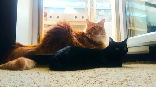 Мейн Кун Степа и кот Тихон. Как старший кот руководит младшим