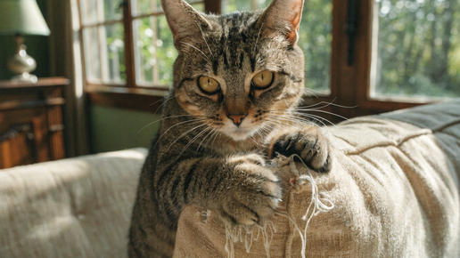 Вы потратили три тысячи рублей на высокую когтеточку с верёвкой и домиком. Поставили её в угол прихожей, чтобы не мешала. Кот подошёл, понюхал, ушёл. И продолжает методично разбирать подлокотник дивана. Вы злитесь, брызгаете водой, ругаете. Ничего не работает. За двадцать лет я разобрала сотни таких случаев — и причина почти всегда одна. Проблема не в когтеточке. Проблема в том, куда вы её поставили и какую выбрали. Для кошки когти — это не маникюр. Это способ пометить территорию, размять мышцы и заявить: «я здесь живу»...