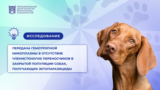 Передача гемотропной микоплазмы в отсутствие членистоногих переносчиков в закрытой популяции собак, получающих эктопаразициды