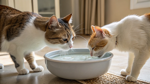 Одна миска с водой для двух кошек: когда достаточно, когда проблема