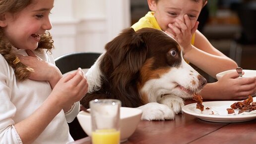 Принципиально ситуация может развиваться двумя путями. Первый путь – виноват любимый пес. Ему хочется разнообразить свой рацион, выпросить внеплановое лакомство. Желательно не одно. Дети представляются ему легкой целью, даже никаких особенных усилий прилагать не надо. Подошел и взял (или отобрал – это более жесткий вариант). Второй путь – виноваты сами дети. Ну, не хочется им есть на завтрак кашу. Почему бы украдкой не скормить ее собаке? А питомца и упрашивать не надо, он тут как тут. Хотели ваши...