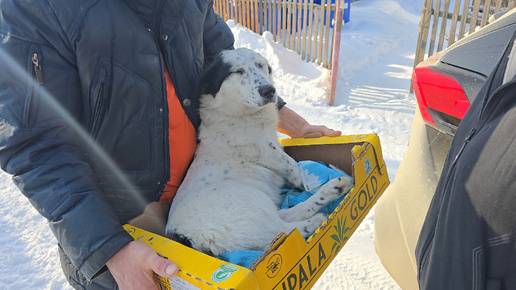 "Замёрзшая Собака приползла во двор и её положили в коробку" - История собаки Мухи и её долгий путь от бoли к надежде!