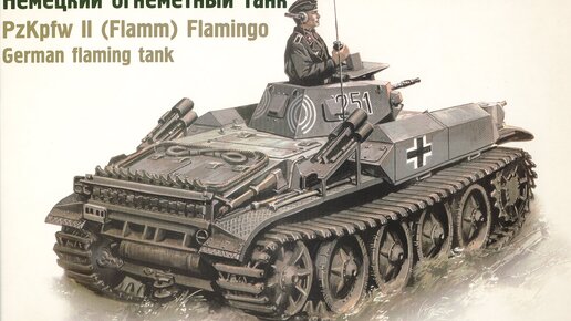 Фламинго Немецкий танк Pz.Kpfw.II (FI) Flamingo — это первый специально разработанный огнемётный танк. Он был создан в 1939 году на базе танков Pz.ll Ausf. D и Е с опорными катками большого диаметра. Стандартную башню заменили на башню с пулеметом в шаровой установке калибром 7,92-мм и приборами наблюдения по периметру. На надгусеничных полках спереди смонтировали две поворотные башенки с брандспойтами огнемётов. Для самозащиты установили дымовые гранатомёты. Танки использовались как средство ближнего боя для непосредственной поддержки пехоты...
