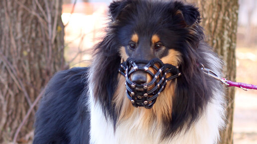 Бордер колли Лилу учится носить серьёзный и взрослый намордник