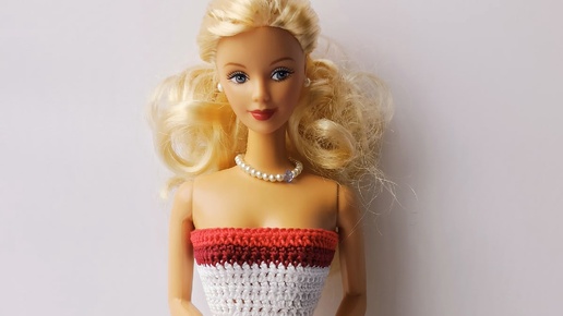 Доброе утро :) Давайте сегодня свяжем платье для винтажных Барби. А потом переделаем его и на обычную :) Что нам потребуется: Крючок №1 Пряжа Vita Pelican трех цветов 2 кнопки для застежки Набираем 32 воздушные петли белой пряжей. Будем использовать такую схему: Автор: Лебедева Юлия (https://vk.com/club84046800) 1 ряд: 32 столбика без накида (сбн). 2 ряд: 2 сбн + прибавка (2 сбн в одну петлю основания) + 26 сбн + прибавка + 2 сбн. 3 ряд: сбн без прибавок (34) 4 ряд: 10 сбн + прибавка (2 сбн) + 11 сбн + прибавка + 11 сбн...