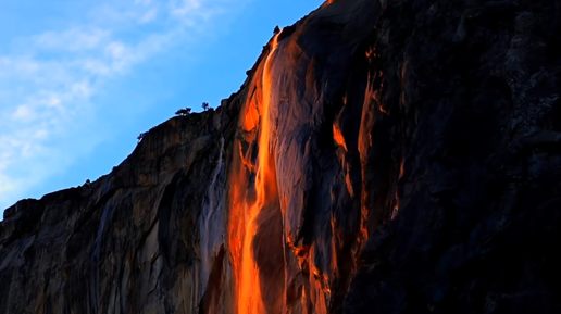 Красивый "огненный" водопад, находящийся в Йосемитском национальном парке
