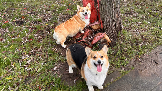 Всем пламенный приветик! 👋 Это снова мы, Ваши пушистые репортерши — Мэри и Мэгги! На связи с очередным выпуском «Корги-вестника», где мы делимся самым актуальным, а иногда и очень мокрым и листопадным! 😜 Рабочая неделя прошла у нас довольно активно. Если бы у нас были ежедневники, они бы трещали по швам! Поездку на дачу в этот раз пришлось ждать недолго, потому что наша Ма обнаружила, что забыла там свои лекарства. Мы, конечно, очень сопереживали... нет, не будем врать! Мы ликовали! 😝 Во вторник мы рванули на дачу, несмотря на то, что с неба лилось как из ведра...