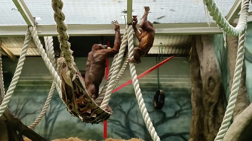 В природе орангутаны питаются плодами, орехами, почками, корой, молодыми побегами и листьями деревьев, травой, любят полакомиться яйцами птиц и мелкими позвоночными, насекомыми. Пьют воду, накопившуюся в листьях деревьев. Давайте заглянем в Московский зоопарк и посмотрим, чем угощают орангутанов. В зоопарке несколько приемов пищи. В Московском зоопарке работники уделяют большое значение кормлению животных, следят за качественным питанием, создают животным максимально благоприятные условия для жизни...