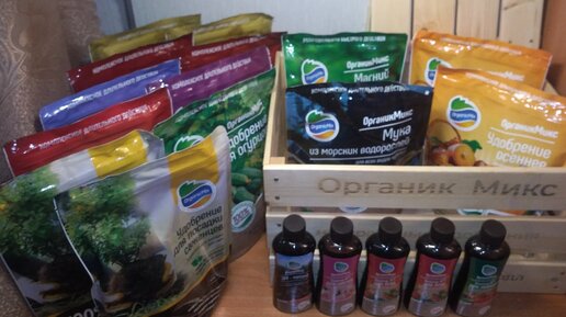 Это не рекламная статья. Удобрения я покупала. Статья об этом здесь. Итак, к прошлому дачному сезону (2021) я покупала себе по акции набор удобрений "Органик-Микс". Доставка была бесплатная, а сами удобрения упакованы в фирменный деревянный ящик с крышкой: Состав набора: