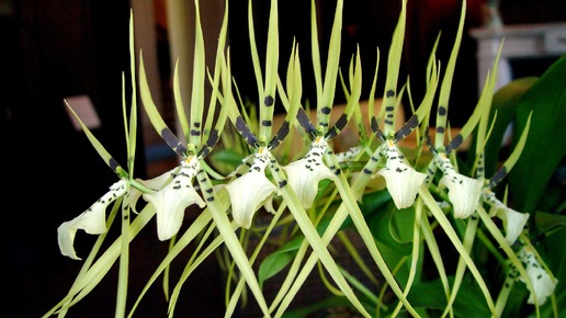 В роде брассии насчитывается около тридцати видов растений. Отличить их среди других орхидей несложно благодаря тонким лепесткам и уникальной форме, выделяющейся зеленовато-белой окраской. Брассии представляют собой орхидеи с симподальными соцветиями средних размеров, достигающие высоты до 50 см. Листья у них овально-ланцетные, с выраженными ребрами и вогнутые вниз, распускаются по 1-3 штуки из каждой псевдобульбы. Они плотно расположены на корневище и имеют сплюснуто-шаровидную форму. Эти орхидеи...