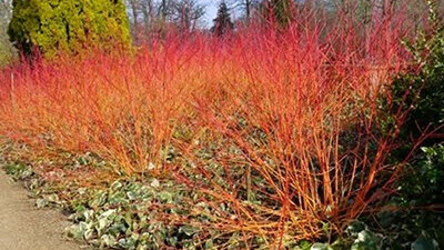 Дерен кроваво-красный Энни Уинтер Ориндж - сорт с наиболее насыщенной и яркой зимней окраской ветвей. Куст очень компактный, высотой и шириной до 150 см. Листья слегка блестящие, молодые - бронзово-зелёные, летом ярко-зелёные, осенью оранжево-жёлтые. Молодые побеги летом светло-жёлто-оранжевые, зимой - блестящие, в нижней половине тёмно-оранжевые, а к вершине значительно краснее. Ветви второго-третьего года остаются немного оранжевыми. Рекомендуется для посадки группами на тёмном фоне, для создания живых изгородей...