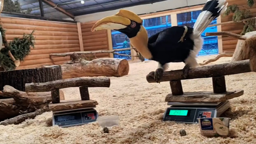 Орнитологи Ленинградского зоопарка научили больших индийских калао взвешиваться