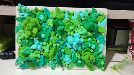 Зеленое панно из воздушного пластилина