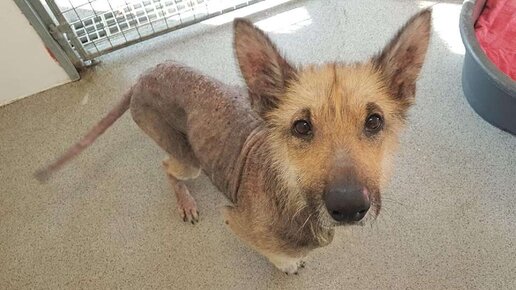 Из-за плохого ухода немецкая овчарка полностью облысела
