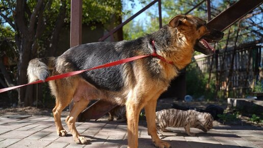 Овчарка выкармливает тигрят в Мариупольском зоопарке