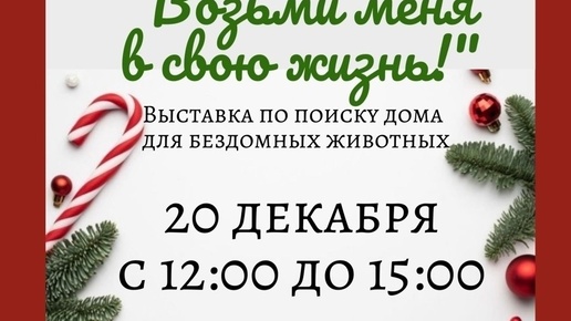 ! 👉 20 декабря с 12:00 до 15:00 часов ВБРОО ОЗЖ "Приют надежды" приглашает всех вологжан и гостей города на выставку 🐱"Возьми меня в свою жизнь!".🐕 Мероприятие пройдет на территории приюта - ул. Товарная 14б. Уникальная возможность абсолютно БЕСПЛАТНО выбрать себе нового друга: взрослую кошечку, кота, котенка, собаку или щенка. Для оформления потребуется паспорт, а также переноска, ошейник и поводок. Если вы не можете взять животное, но хотите помочь, мы будем благодарны за следующие пожертвования: - Корма (сухие и влажные) для кошек, щенков и собак...