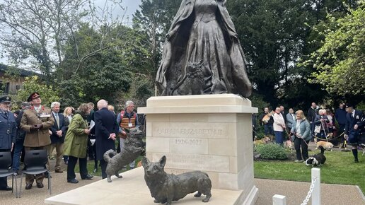 В Великобритании открыли памятник Елизавете II и ее корги