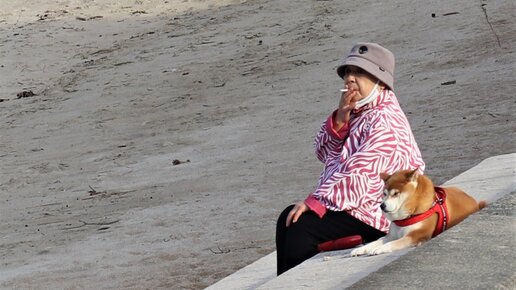 На фото наша соседка с толстенькой Рабу-чан (от англ. "love" - любовь, а по-нашему - Любочка). Владельцы собак всегда выходят на прогулку, вооружившись пакетом и небольшой лопаткой, чтобы убирать за своими питомцами...