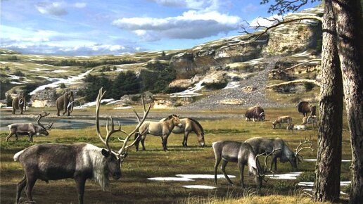 Все видели кадры богатой природы африканских саванн: стада антилоп, слоны, носороги, зебры, львы... А теперь представьте, что всё то же самое было когда-то там где сейчас наши тундра и тайга. Тысячи лет назад не было лесов, тайги, не было и тундры - были бескрайние степи, редколесья и стада животных. Да, звери немного другие, не африканские, но очень похожие. Кстати, это не совсем фантазия художника - мне попалось пояснение, что изначально эта известная картинка была сделана на основе расчётов палеонтологов о плотности заселения 1 кв...