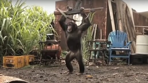 Может ли обезьяна стрелять из автомата? Или реально ли видео из Африки