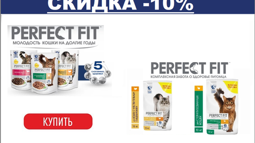 СКИДКА -10% НА ВЛАЖНЫЙ (ПАУЧИ) И СУХОЙ 10 КГ. КОРМ ДЛЯ КОШЕК PERFECT FIT