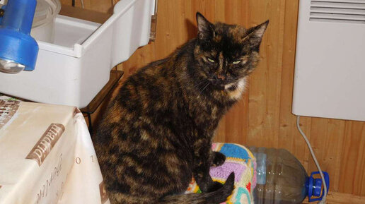 Когда она только появилась, было полное впечатление, что она хозяйская. Ласковая, добрая, лезла в руки, мурлыкала. Из-за пегой окраски показалась страшненькой, потом пригляделись - ничего, нормальная кошка...