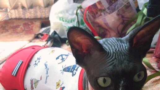 Поскольку у сфинксов кожа не защищена шерстью, то она очень чувствительна. Такая порода легко получает солнечные ожоги и замерзает. Иногда я вижу, как сфинксы в жару гуляют по двору частных владений и у меня шок. Люди вы совсем с ума сошли? Как так можно? Сфинксов можно выгуливать, но в одежде. У моей Молли красивый гардероб...