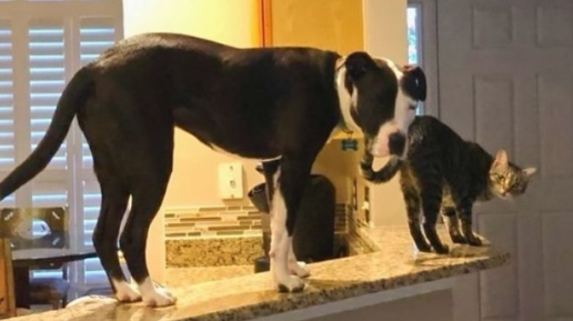 Питбуль, который жил с кошками, стал перенимать их повадки и быстро обрел популярность в интернете