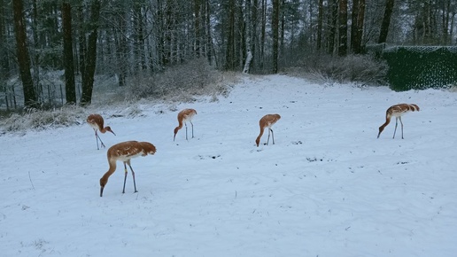 собранных в Якутии яиц. Зима выдалась суровой — в январе из-за последствий ледяного дождя прохудилась вольерная потолочная сетка, а в феврале после сильного снегопада поломались деревья, оборвались провода, питомник оставался без света. 😔 Птенцы, конечно, скучают без прогулок — вольеры завалило снегом, на улицу точно нельзя — можно замёрзнуть. Сотрудники развлекают пернатых как могут — дают «поиграться» с ветками сосны, которые журавли любят теребить и снимать кору...