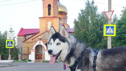 Сынок не кусай лапку хаски, а то в лоб получишь. Малыш изучает собаку